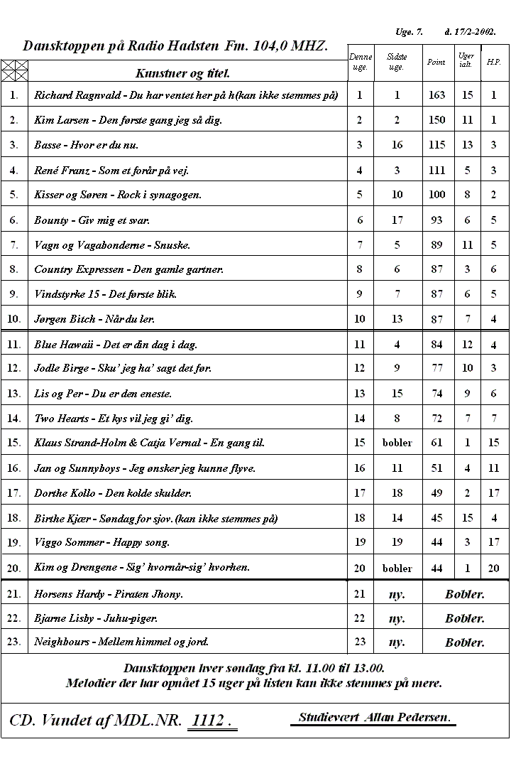 Hitkassen Radio Herkules (Kolding) Uge 7